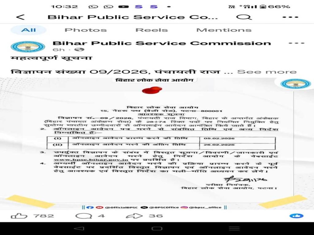 बिहार सरकार के पंचायती राज विभाग ने प्रदेश के युवाओं को रोजगार का बड़ा तोहफा दिया है। विभाग ने अंकेक्षक (बिहार पंचायत अंकेक्षण सेवा) के रिक्त पदों पर नियमित नियुक्ति के लिए आधिकारिक अधिसूचना (विज्ञापन संख्या 09/2026) जारी कर दी है। इस भर्ती के माध्यम से कुल 102 (28+74) पदों को भरा जाएगा। बिहार में सुशासन और पंचायतों के पारदर्शी कामकाज को मजबूत करने के उद्देश्य से इन अंकेक्षकों की नियुक्ति की जा रही है। यदि आप निर्धारित पात्रता को पूरा करते हैं, तो 05 फरवरी से शुरू होने वाली इस प्रक्रिया में भाग लेकर बिहार सरकार का हिस्सा बन सकते हैं।